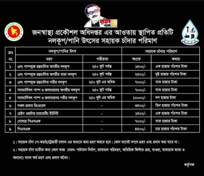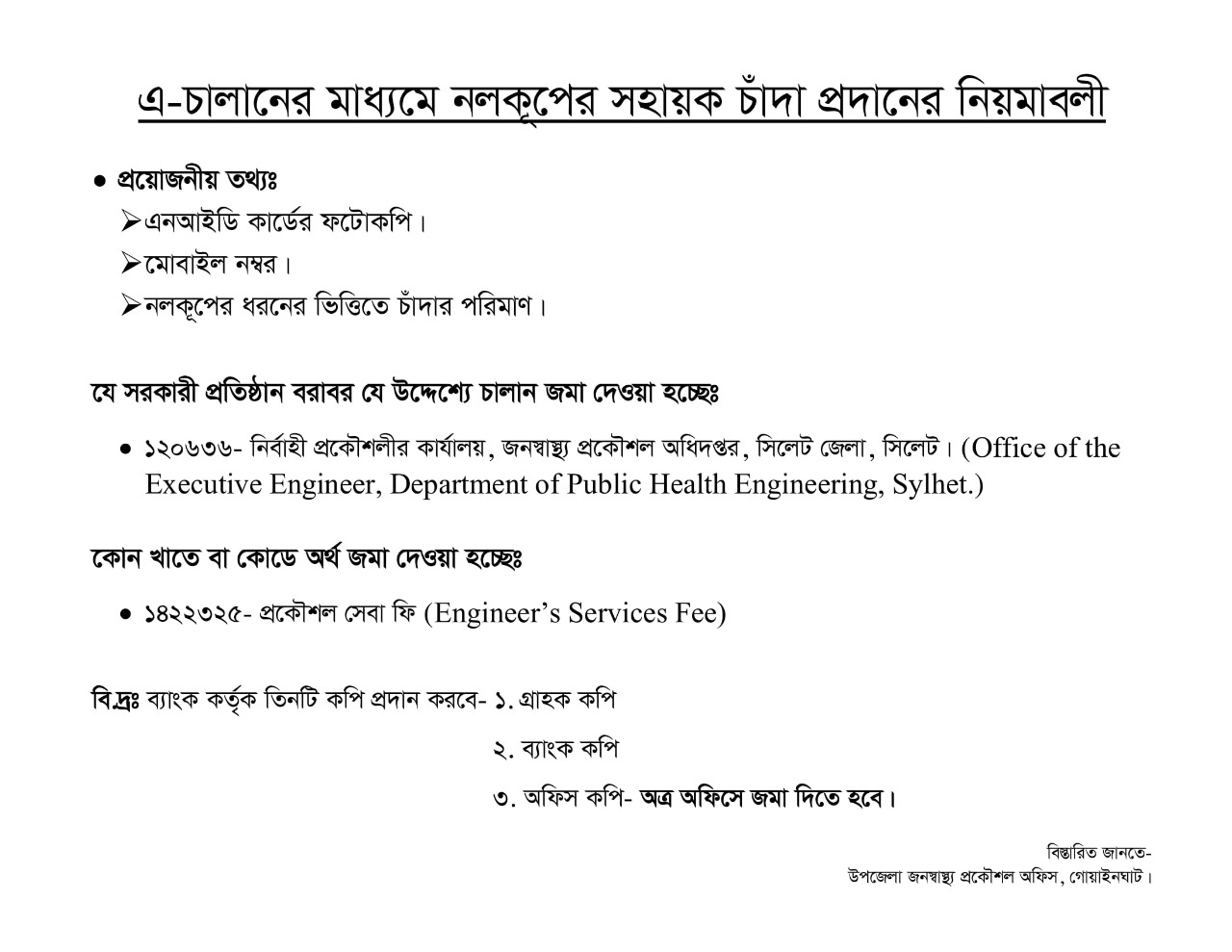 এ-চালান এর মাধ্যমে নলকূপ স্থাপনের ফিস সরকারি কোষাগারে জমা দেওয়ার সকল তথ্য।